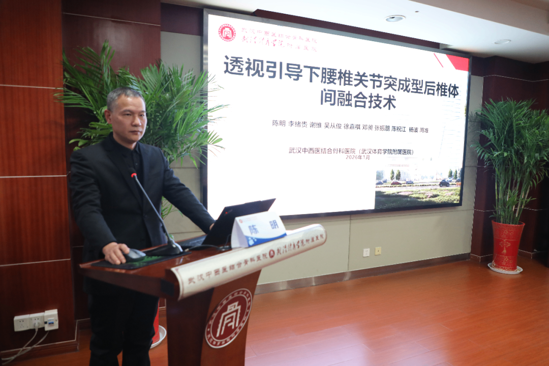 海飚教授以《Q-TLIF技术的临床应用及发展前景》为题,系统阐述了该技术的创新理念与临床价值;我院脊柱外科一病区陈明博士则通过《改良透视引导下经椎间孔关节突成形后椎体间融合技术案例分析》,结合具体病例分享了技术改良与实践心得。