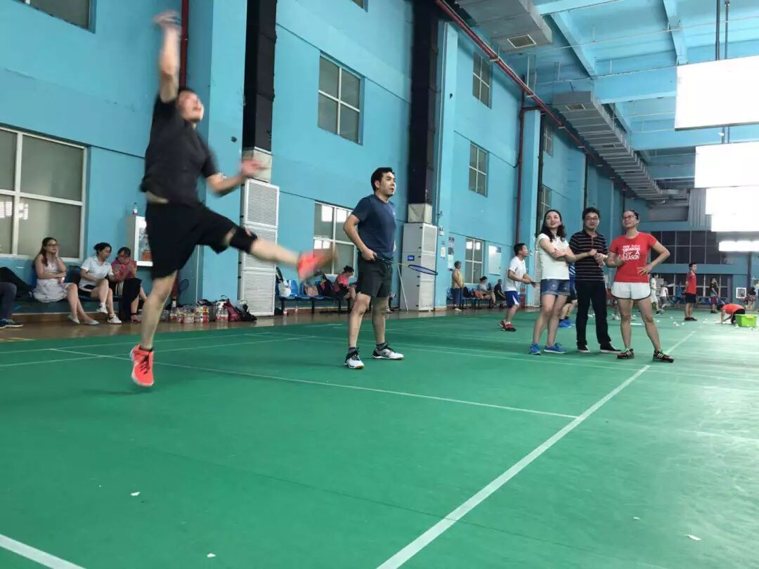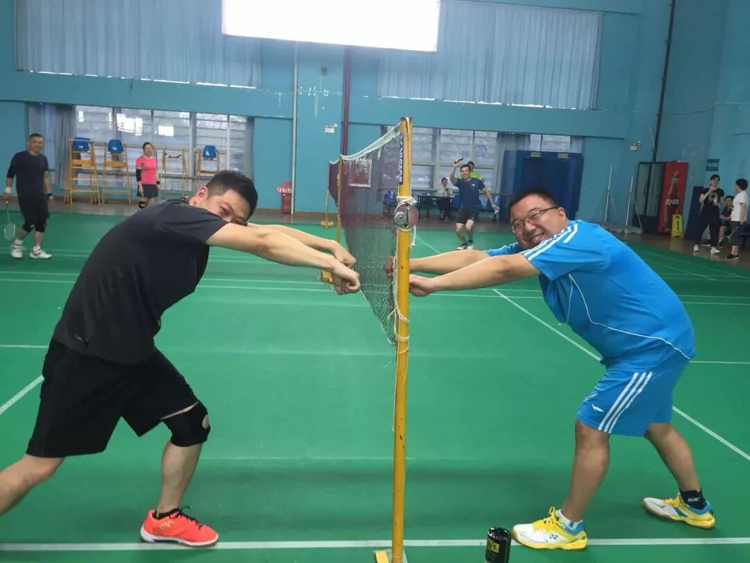 羽毛球赛分为初赛及决赛两个环节,工会主席蔡兵及副主席周诗晶到场为各位参赛者加油鼓劲,蔡主席也积极参与了此次比赛,在赛场上与队友们一同挥洒汗水。