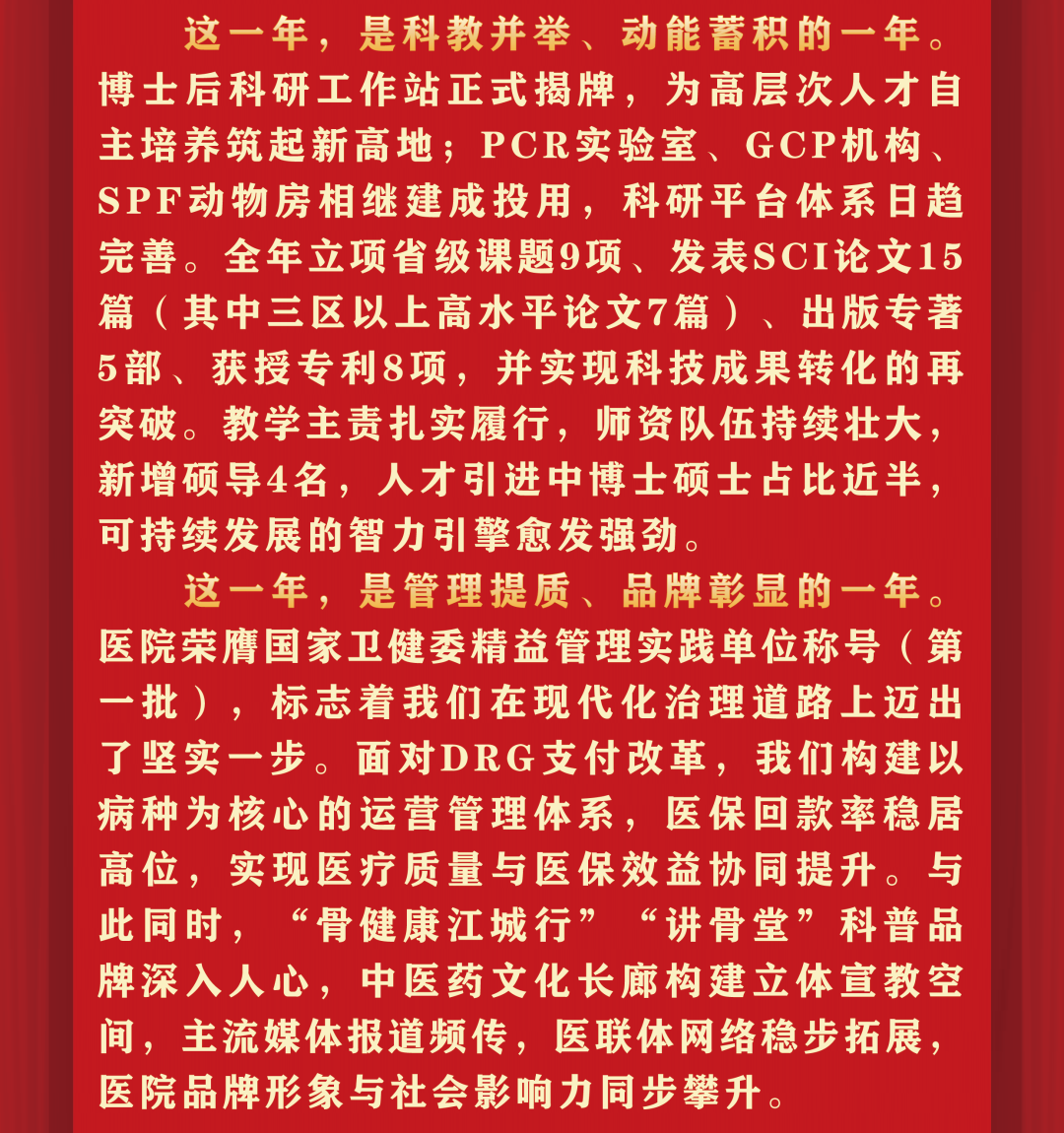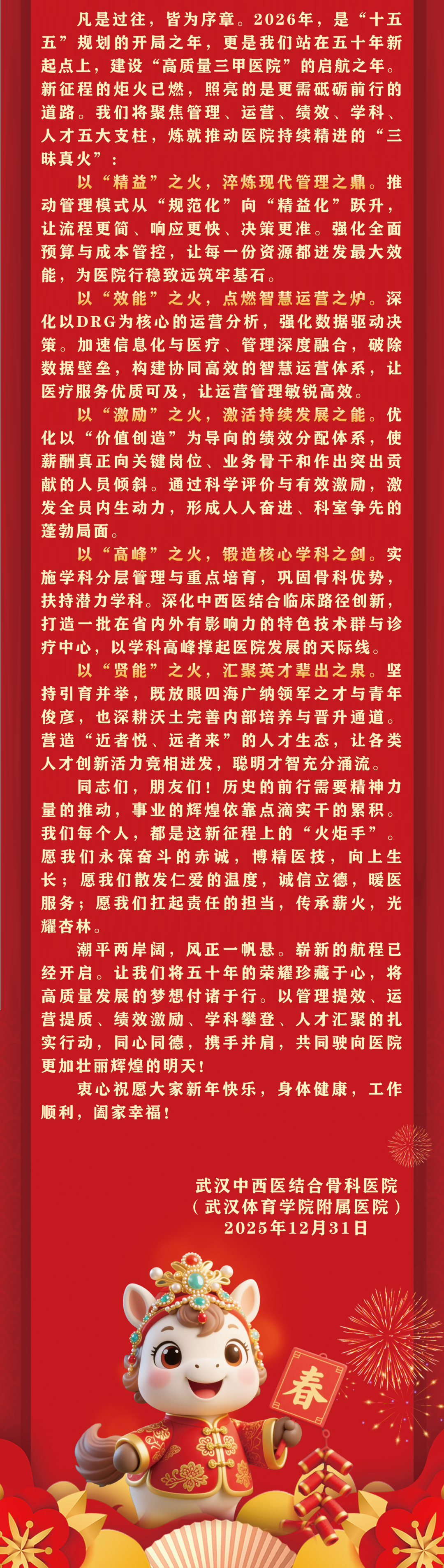 武汉中西医结合骨科医院(武汉体育学院附属医院)2026年新年贺词